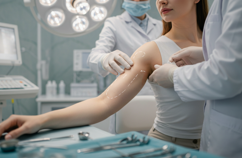 Le lifting des bras est réalisé par des chirurgiens esthétiques expérimentés dans un environnement clinique ou hospitalier stérile. Avant l'opération, l'anatomie des bras du patient est examinée en détail et un plan chirurgical est établi.